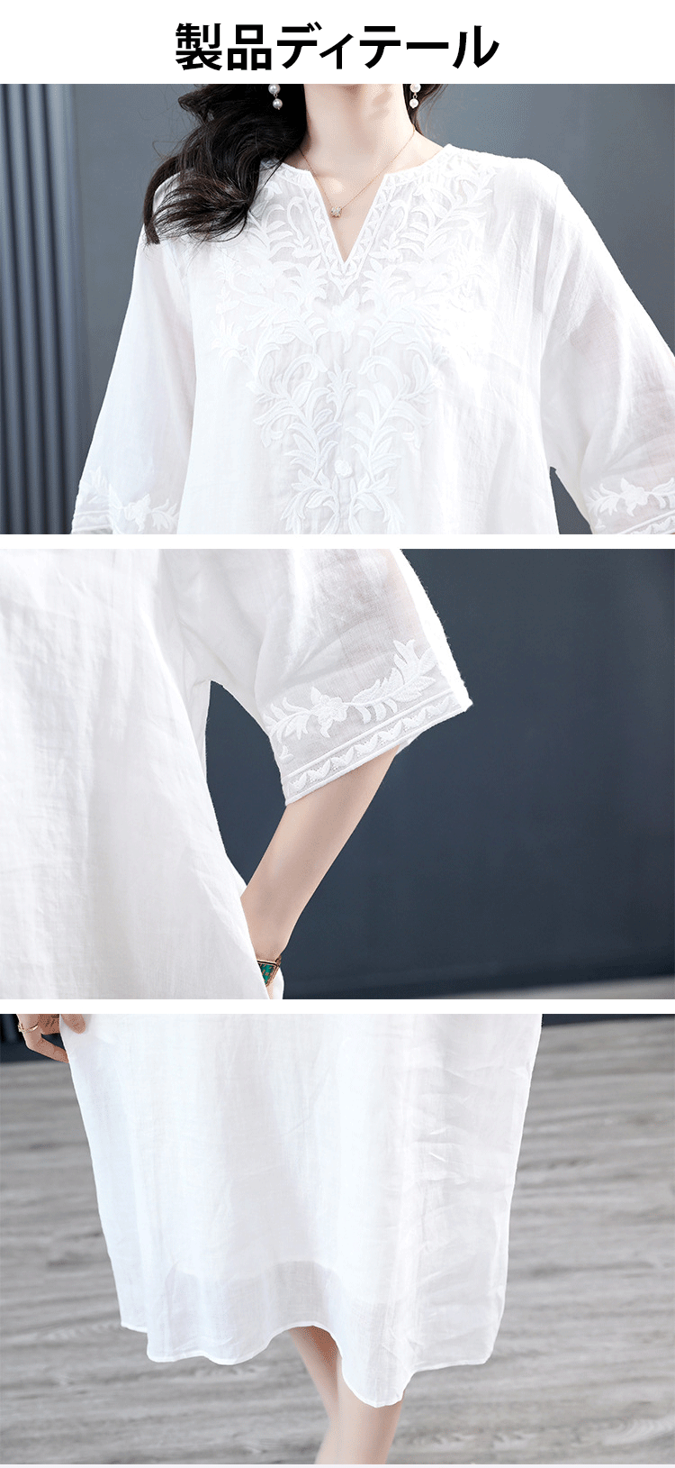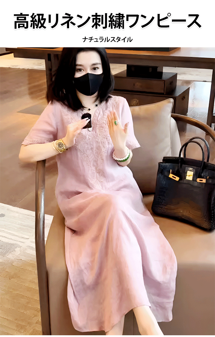 高級天然リネン刺繍ワンピース